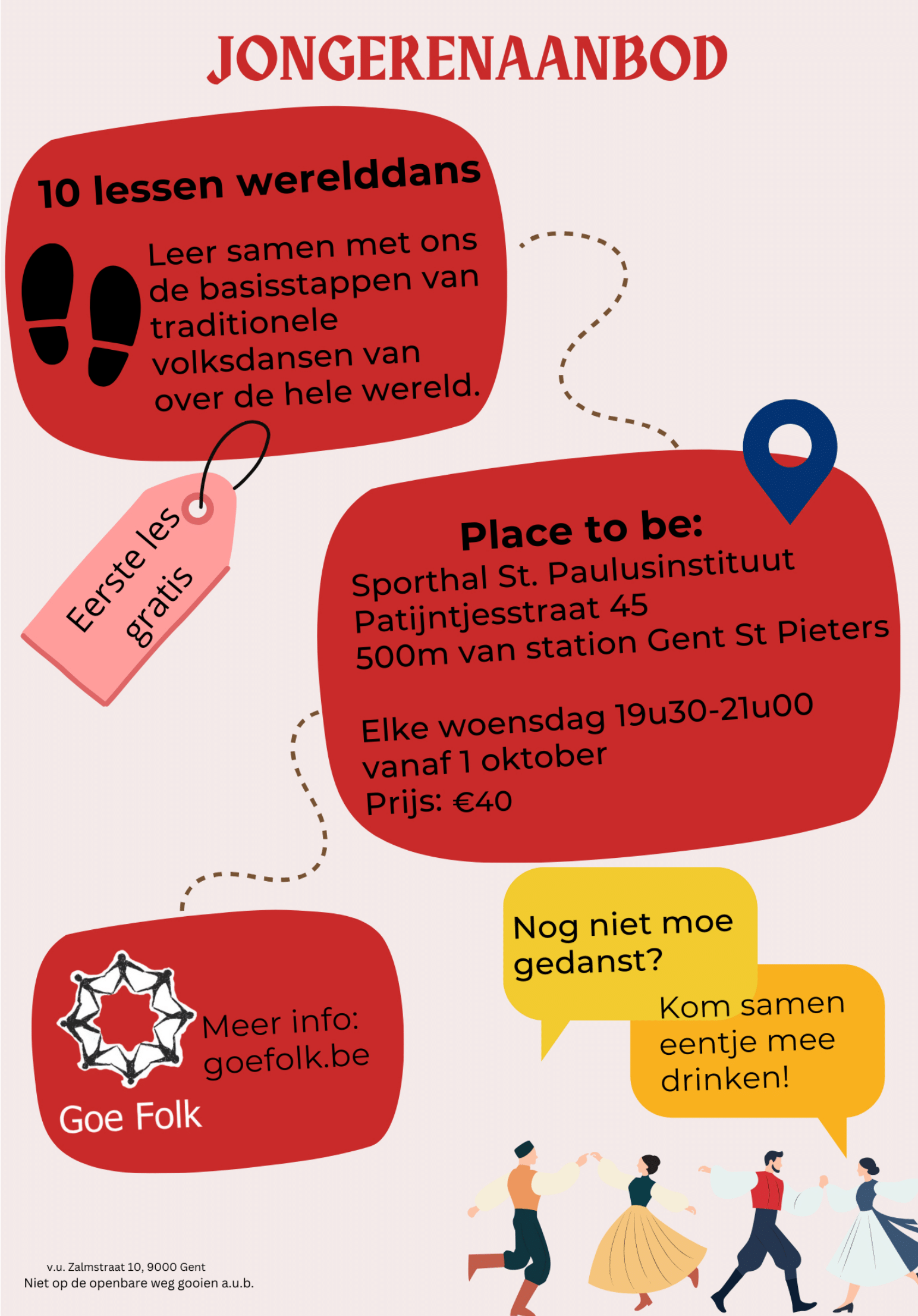 Ben je nieuw bij Goe Folk? Iedereen welkom, maar stuur graag een berichtje naar info@goefolk.be als je wilt meedansen zodat we weten hoeveel volk te verwachten!